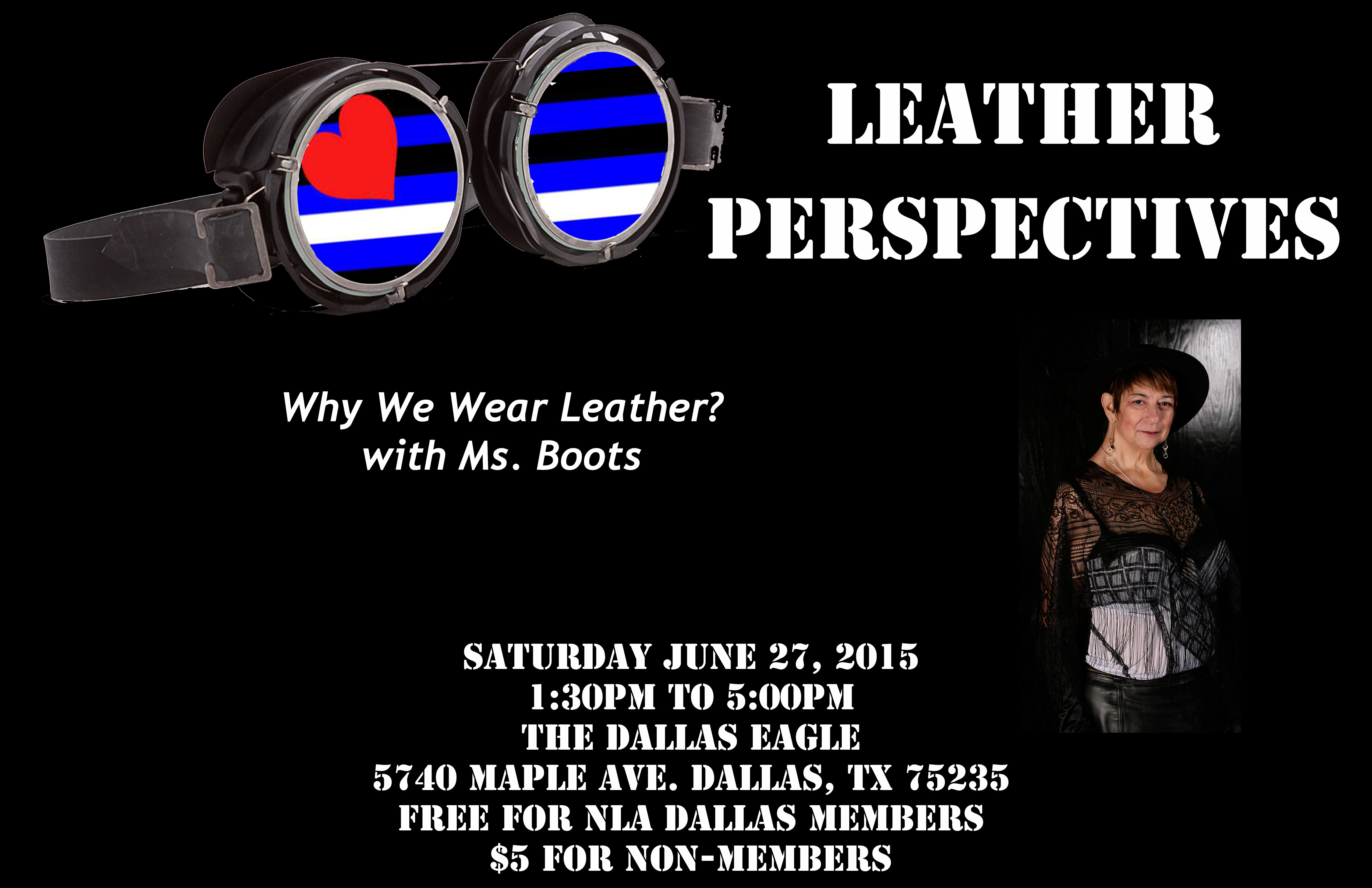 Leather Perspectives is a monthly event sponsored by NLA-Dallas. NLA-Dallas is a DFW based organization focused on the education of those interested in and/or living the leather/SM/fetish lifestyle. As a gateway leather club, NLA-Dallas is open to people of all walks of life regardless of orientation or identification. We invite you to join us for a General Membership meeting on the first Tuesday of each month, a Leather Perspectives on the fourth Saturday of each month, or an Advanced Workshop each quarter.